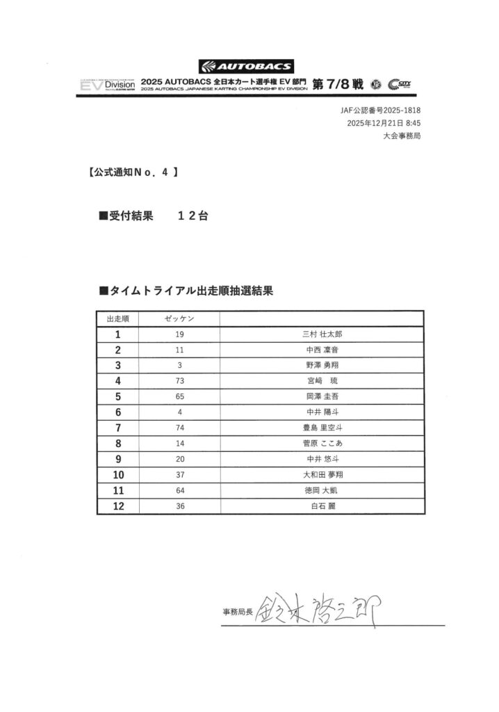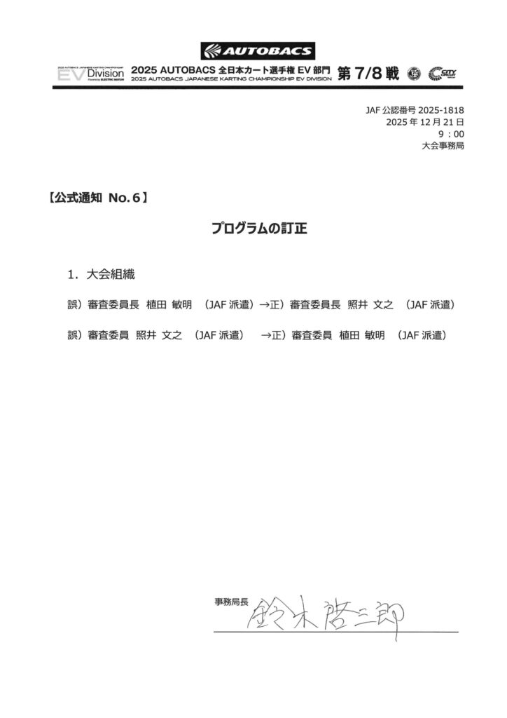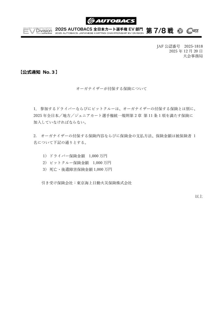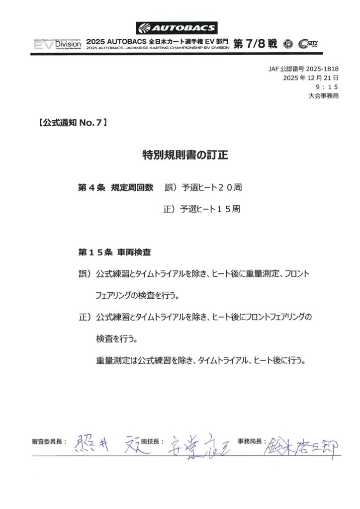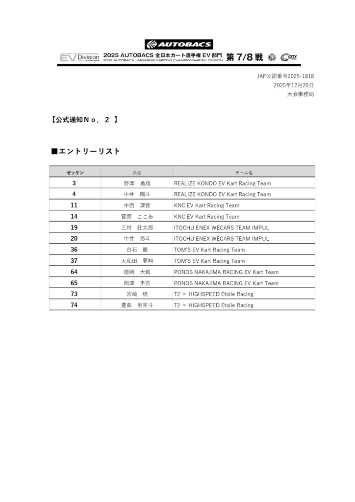 | 競技会名 | 2025 オートバックス 全日本カート選手権 EV部門 |
