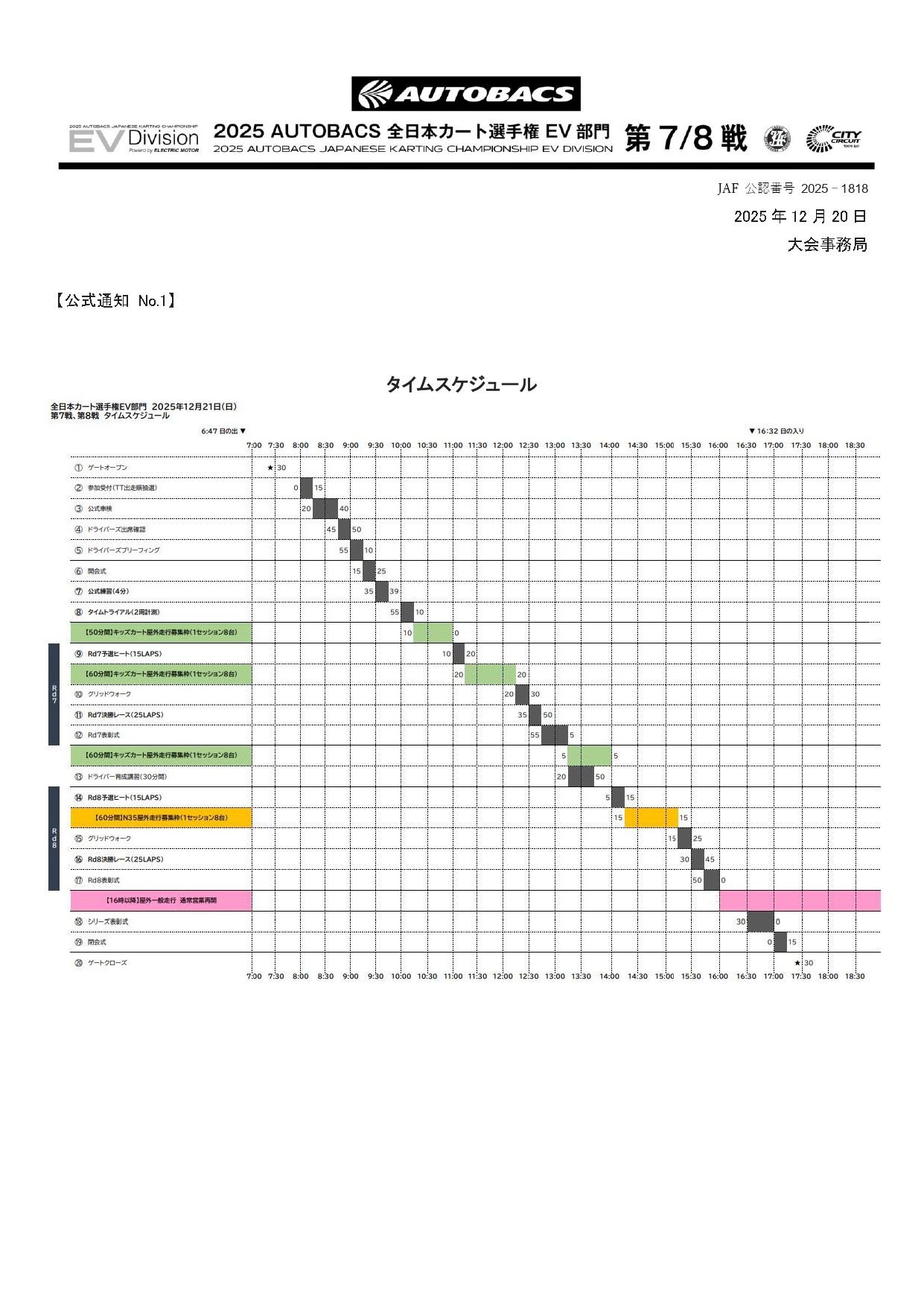 | 第7戦 | 12月21日 | シティサーキット東京ベイ | レーシングチームあかつき、TOM’Sカートクラブ | 終了 |