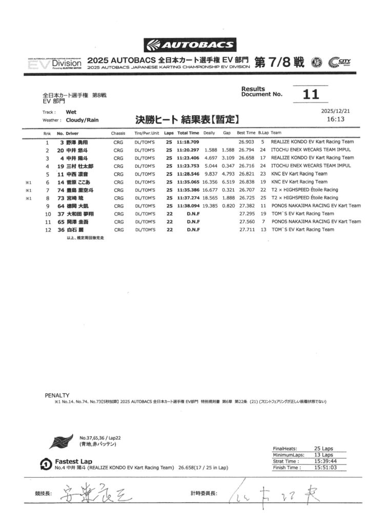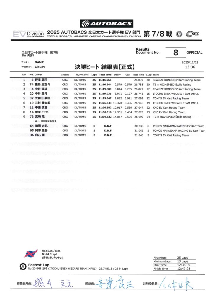 | Rd8決勝レース(25LAPS) | 15:30 | 15:45 |