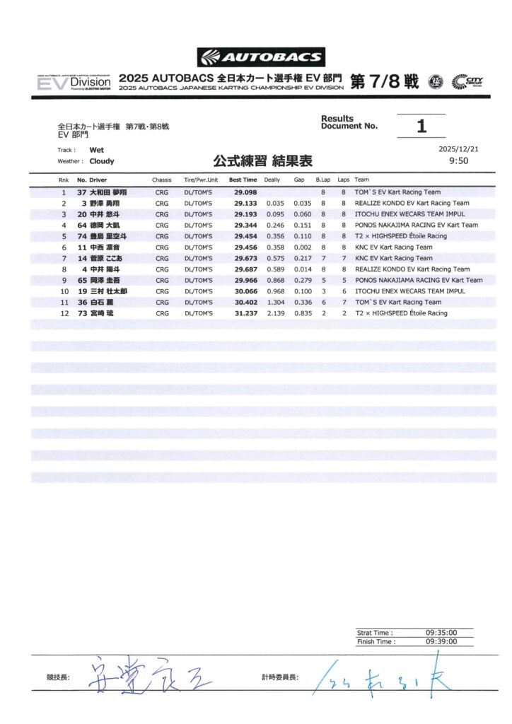 | ドライバーズブリーフィング出席確認 | 08:45 | 08:50 |