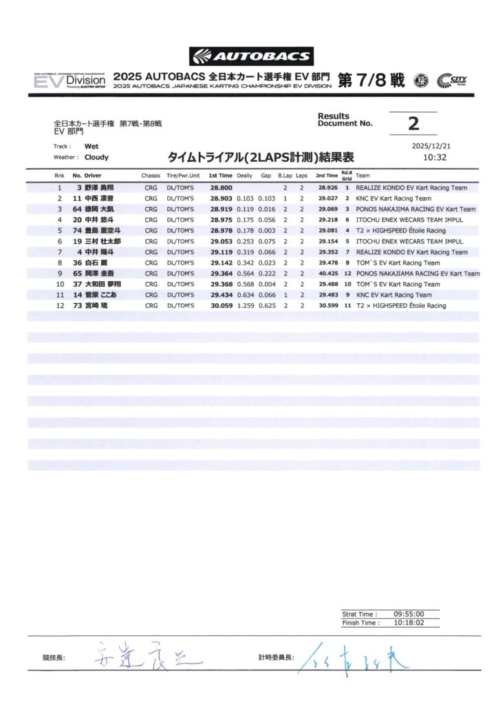 | タイムトライアル(2周計測) | 09:55 | 10:10 |