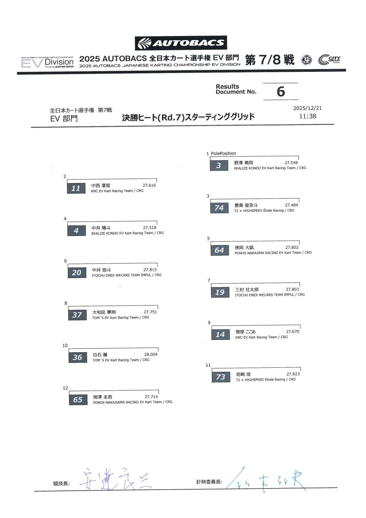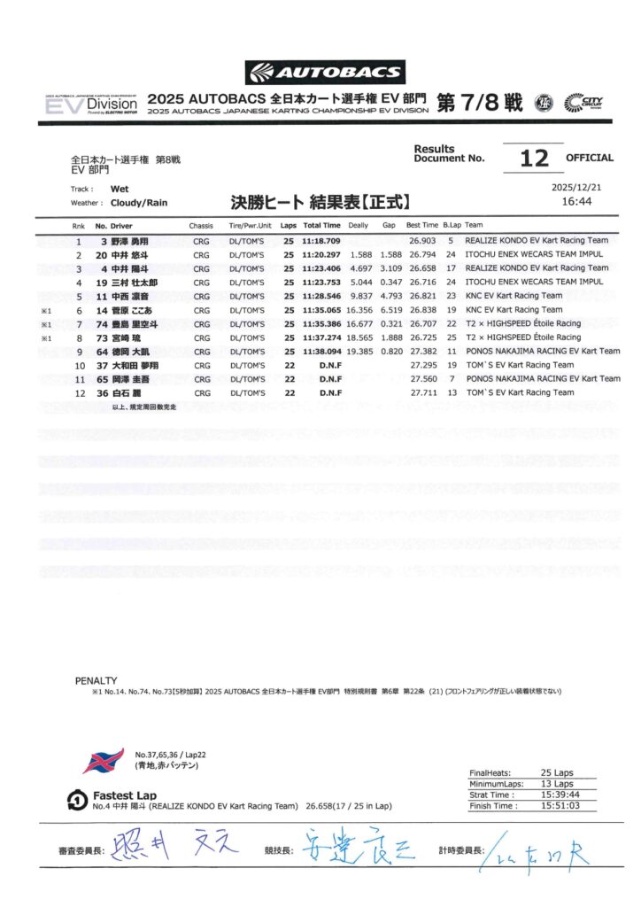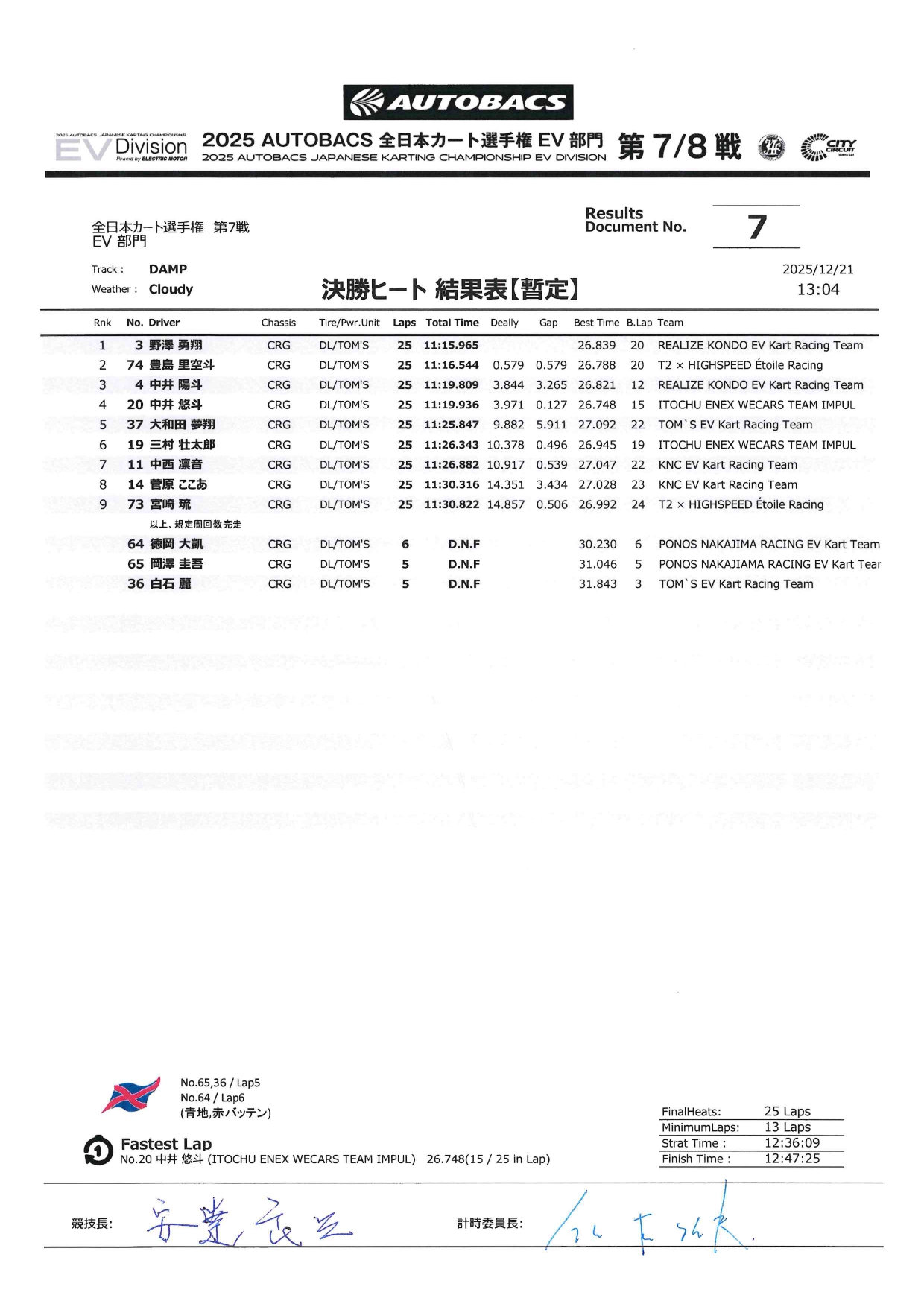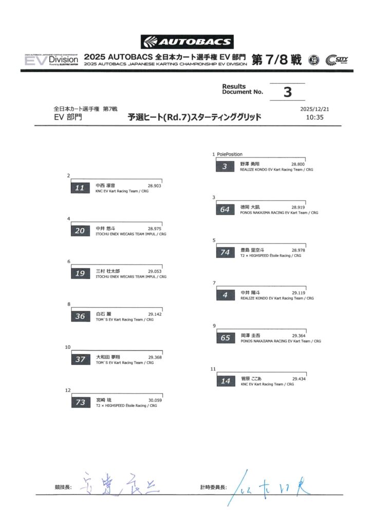 | Rd7決勝レース(25LAPS) | 12:35 | 12:50 |
