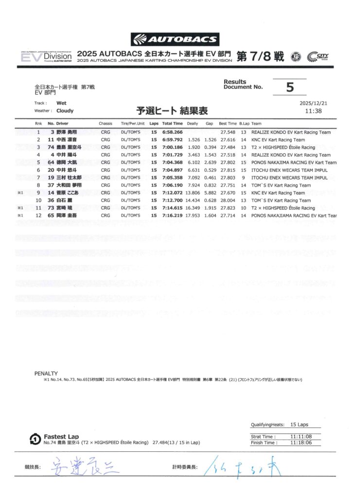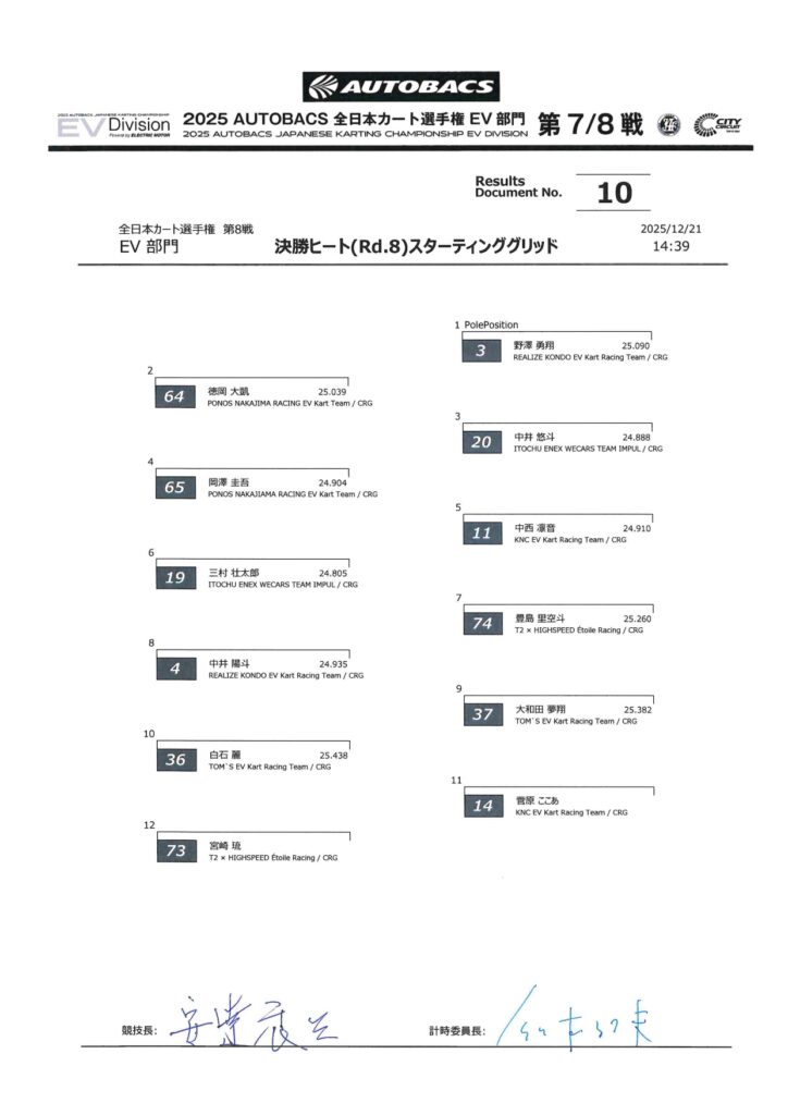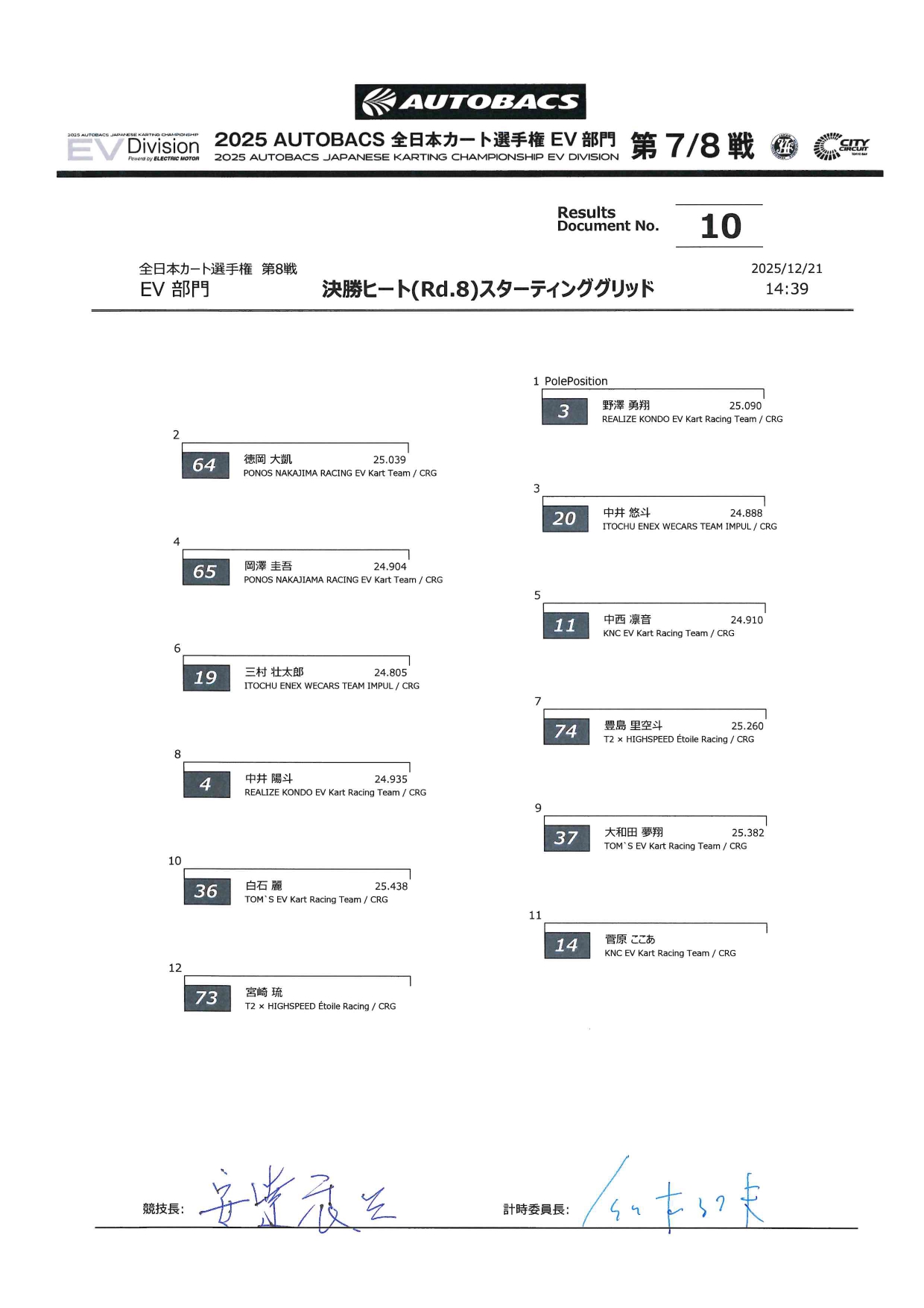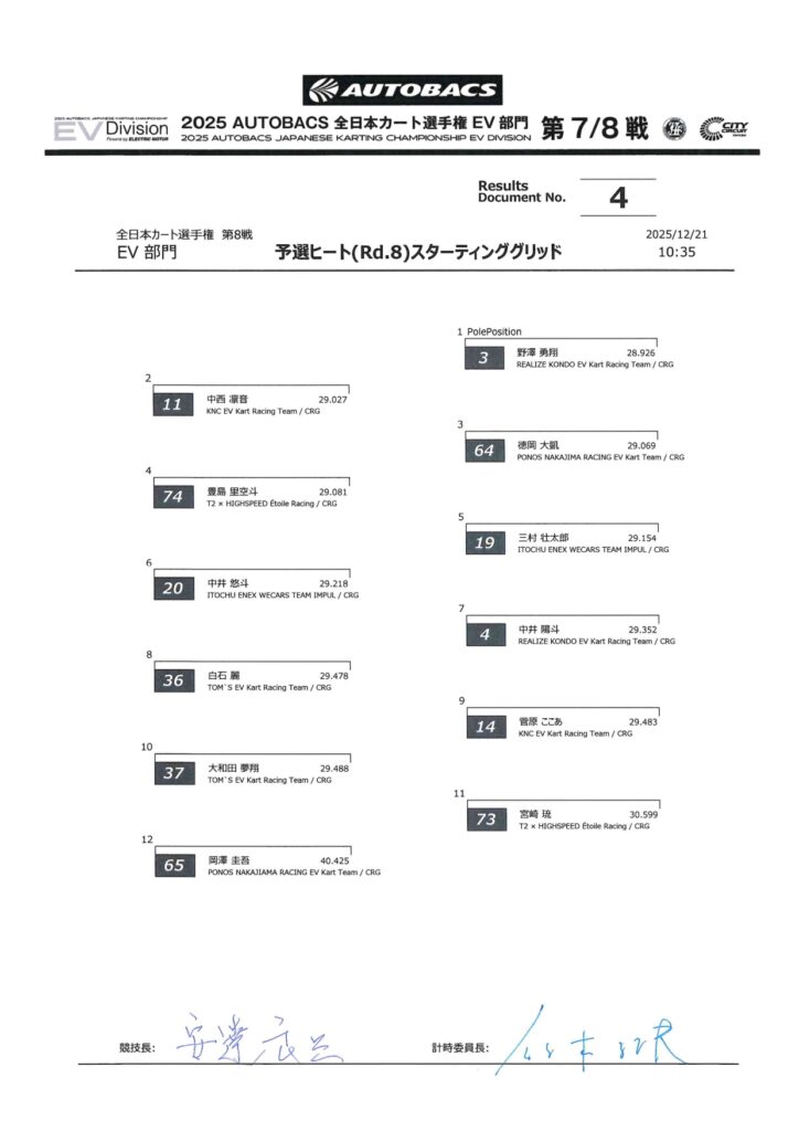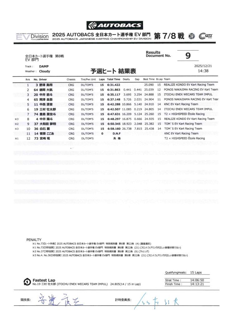 | Rd8予選ヒート(15LAPS) | 14:05 | 14:15 |